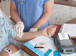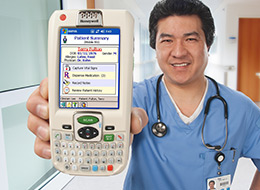 Para reduzir drasticamente os erros, a tecnologia de terminal portátil, está sendo implementada no ponto atendimento. Enfermeiros equipados com dispositivos portáteis fazem a leitura de seus próprios crachás de identificação com código de barras, além da pulseira do paciente e da medicação antes da administração, e as bolsas de sangue antes da transfusão e a bandeja de comida antes da entrega. E para garantir que as amostras estejam associadas com o paciente correto, os médicos podem imediatamente rotular e registrar amostras retiradas ao lado do leito. Usar o código de barras para identificação e verificação no ponto de cuidado não somente reduz os erros, mas também melhora a eficiência e eficácia de custos.