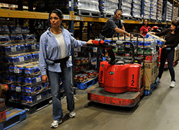 Fluxos de trabalho, tais como reposição e armazenamento, costumam usar o mesmo tipo de veículo; o Vocollect Voice intercala essas tarefas para proporcionar eficiência na utilização do funcionário. Por exemplo, a Solução Talkman para Instalação em Veículos (VTM) instala o aparelho de computação móvel Talkman A500 em uma empilhadeira ou paleteira, usando energia do veículo e permitindo que o funcionário use apenas o headset sem fio SRX2. Em seguida, com processos intercalados, o WMS pode direcionar um motorista que acabou de concluir uma tarefa de armazenamento para o reabastecimento de uma separação no trajeto de volta - ajudando a reduzir a "viagem ociosa". Da mesma forma, o WMS pode atribuir o próximo trabalho de reposição ou armazenamento aos operadores, reduzindo ainda mais o tempo de viagem ociosa. Intercalando esses dois fluxos de trabalho, o número de veículos e operadores pode ser reduzido em 20%-25%.